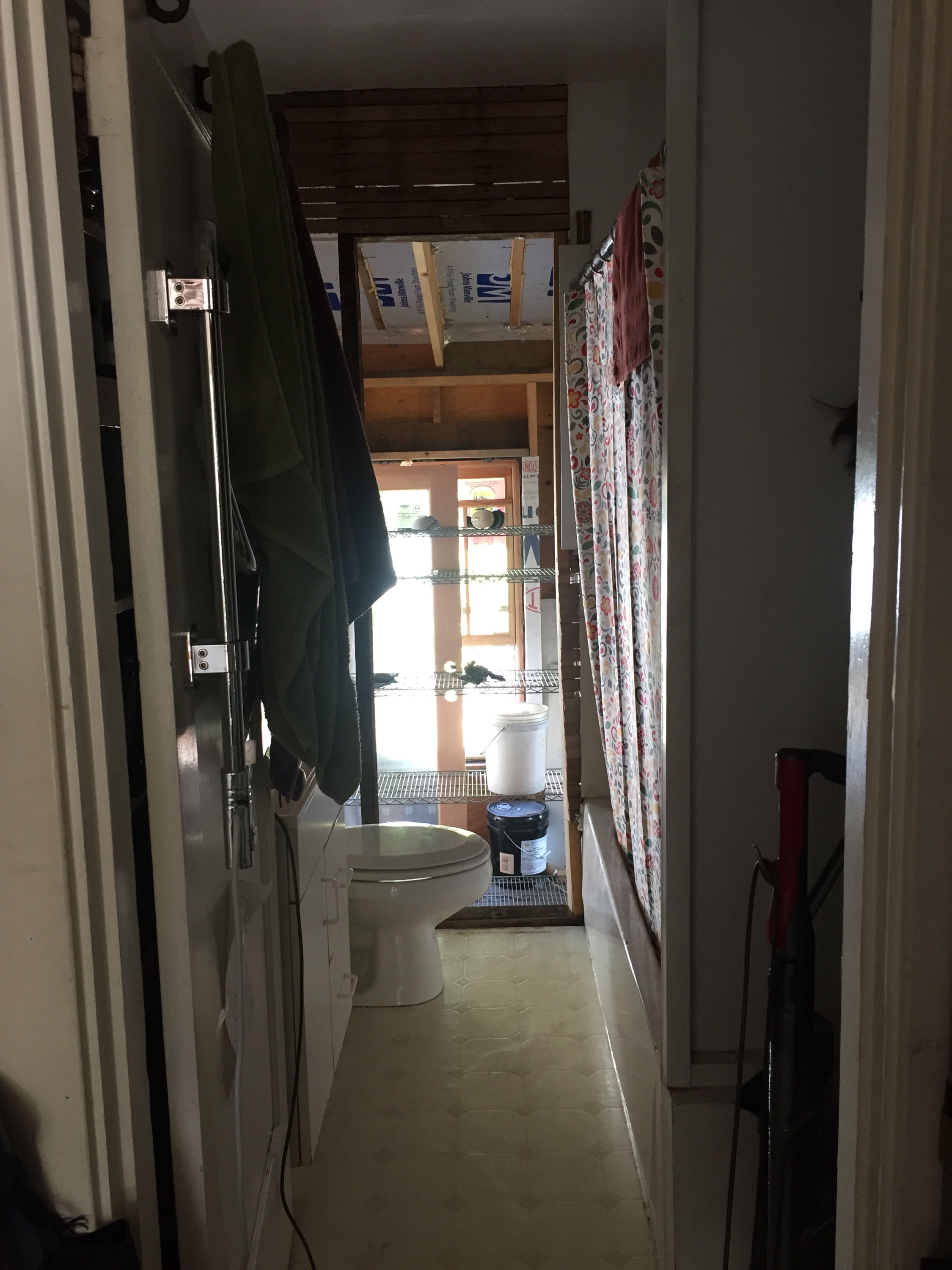 This project requires the existing bathroom to become a hallway connecting new stairs to the new space. The existing kitchen will become our upstairs bathroom. The living room becomes a bedroom. As you might imagine, the dramatic transitions are in those highly used and utterly essential rooms with plumbing.