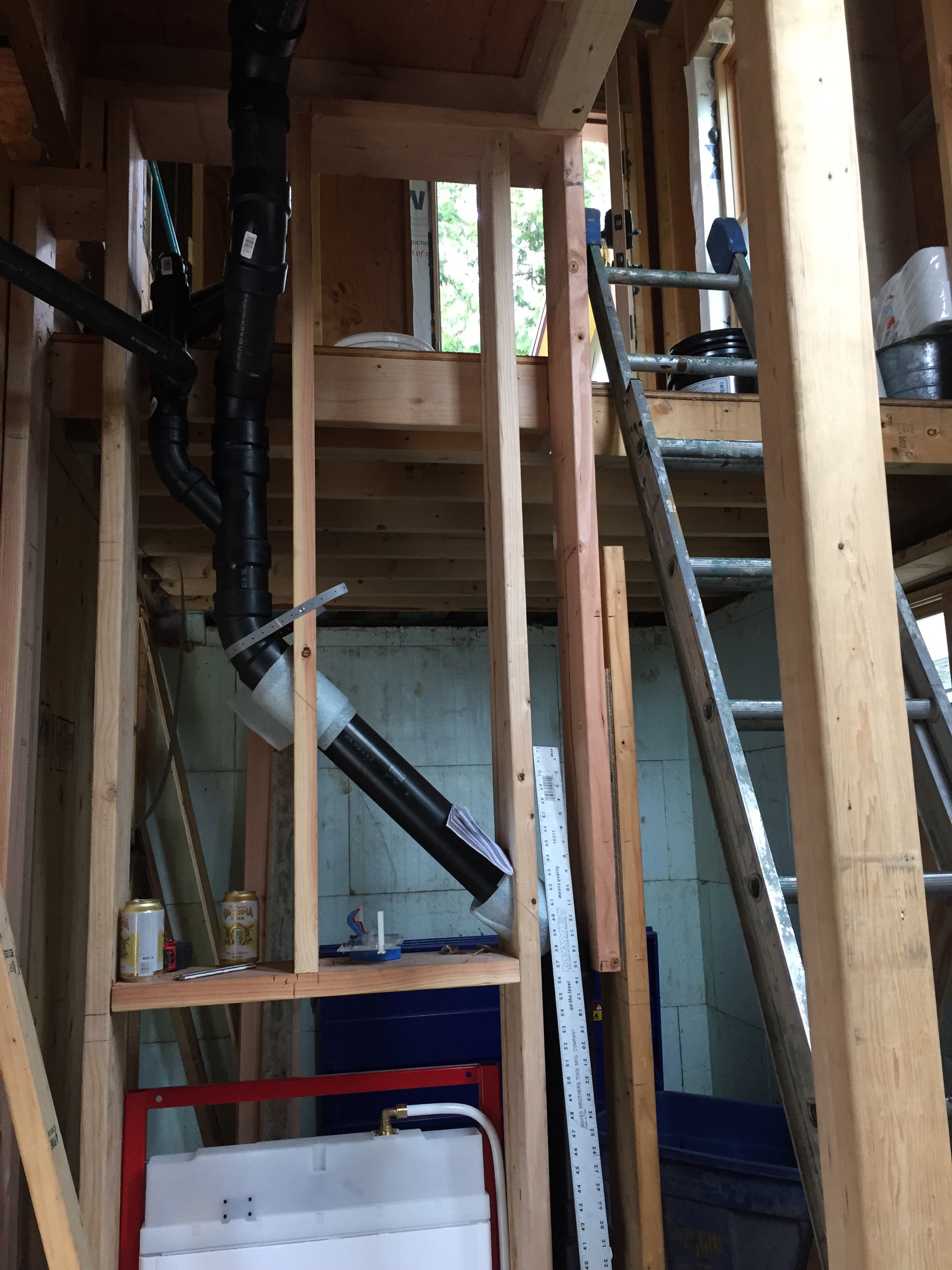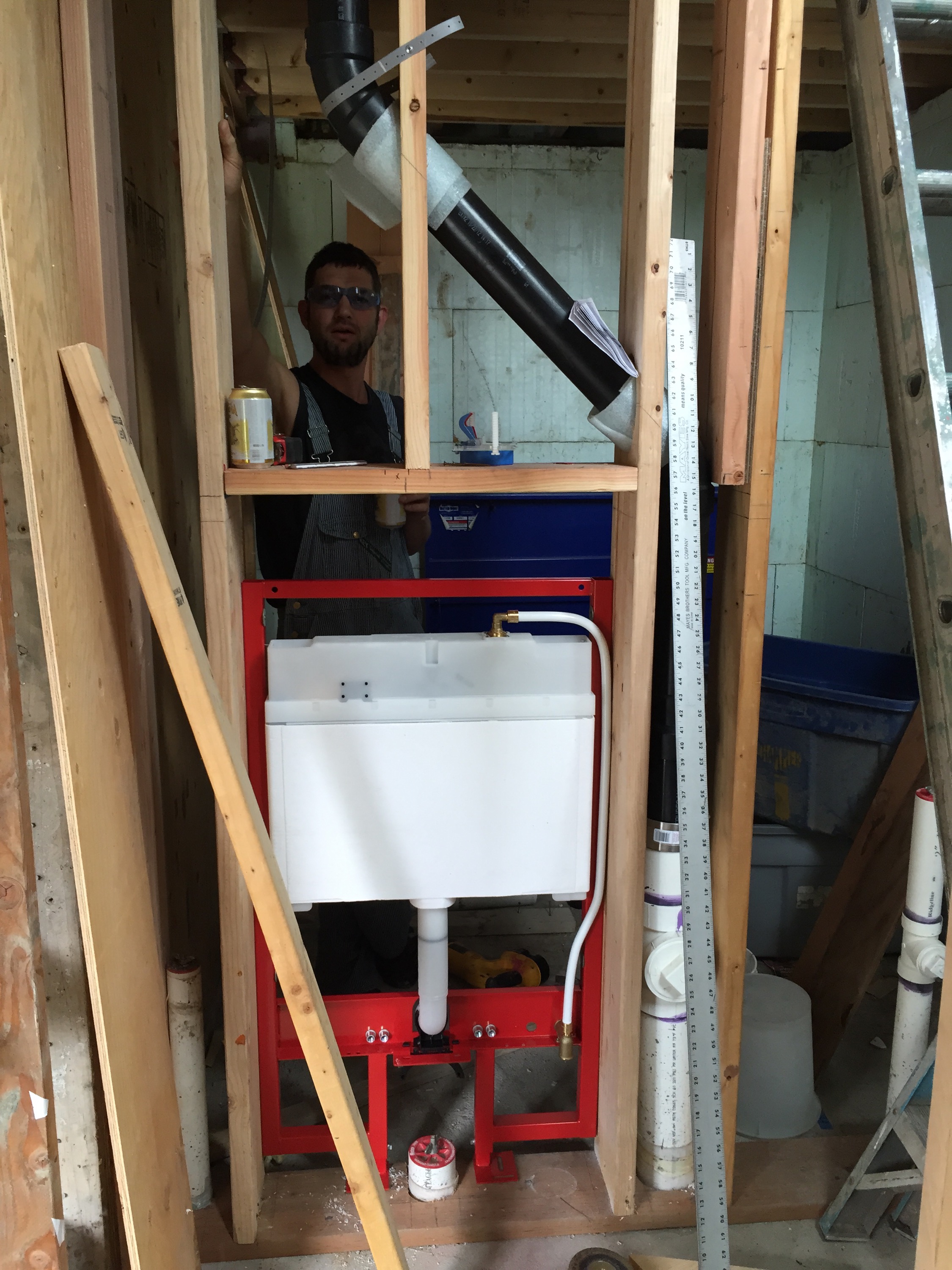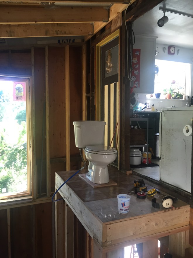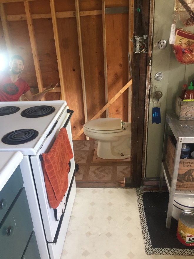At the end of that week we had our real toilet location up and running, though still with the old toilet. Unfortunately, the real toilet location is right by the existing stove.