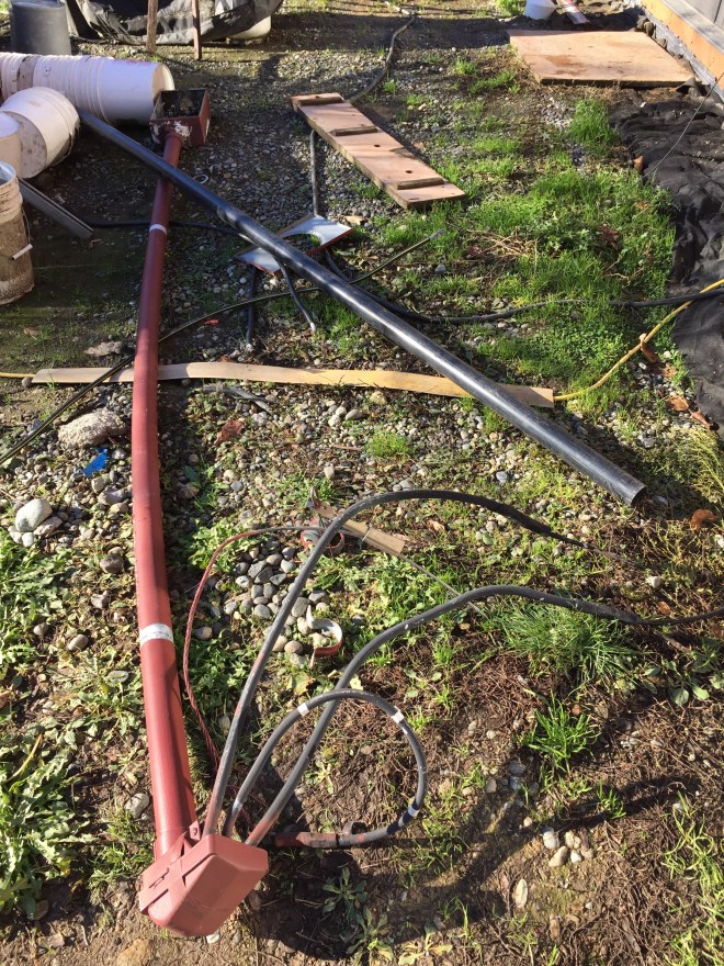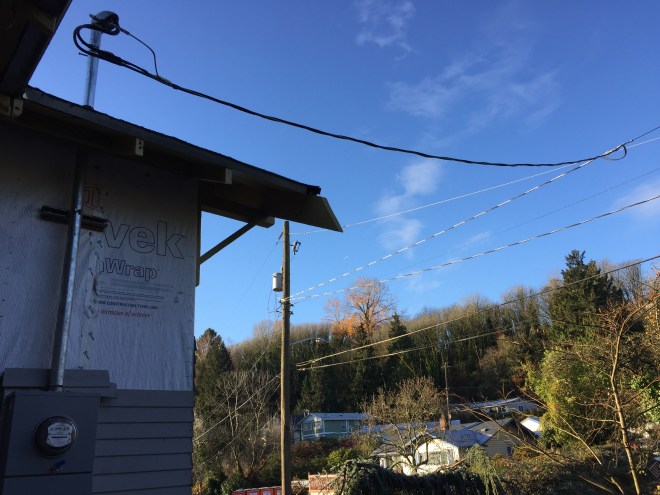 We got into a bit of a “hurry up and wait” situation with the power company there for a bit, but the wait is over! Our meter has moved to its new permanent home on the north side of our closet bump-out. This may seem like a small thing but it means WE CAN HAVE HEAT!