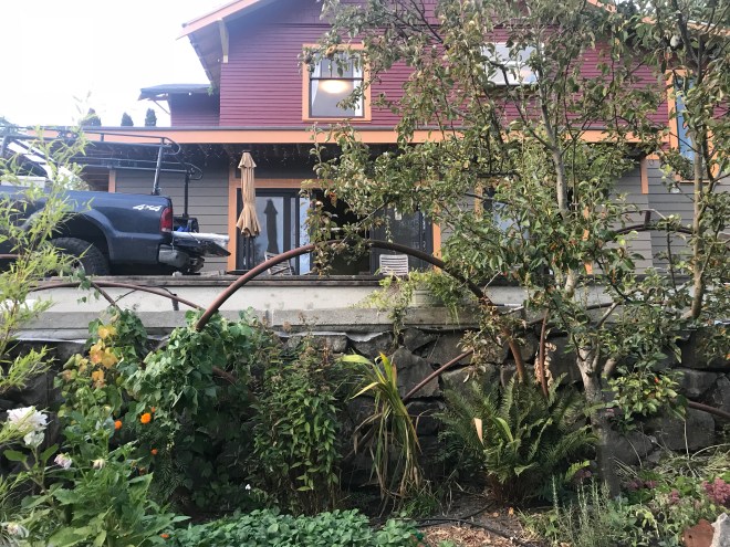 In the meantime, it was really satisfying for me to have that hard edge to define the garden/planting area as opposed to construction/driveway area, and I spent some time clearing out rocks and rubble and fluffing the garden beds in celebration.