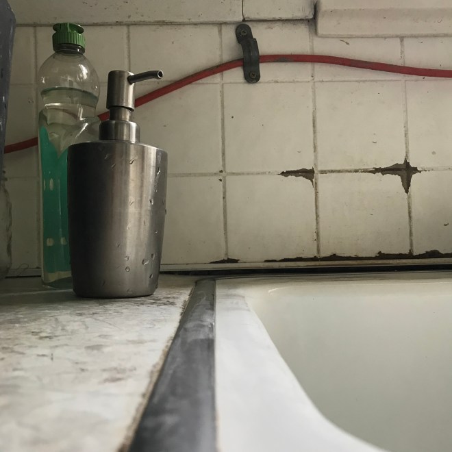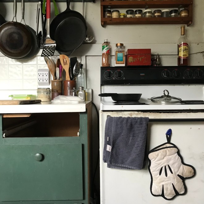 There are many things in this kitchen that I won’t miss, it is very much worse for the wear. It suffers from a syndrome wherein one doesn’t bother to fix the busted things because one is building a replacement soon, even though “soon” is maybe 5-10 years from when it started to fail. But as I took these photos today to document the busted drawer, the cabinets that won’t close, the scratches and dings, the permanent grime and the rot, I found myself appreciating what those things meant. Constant use for almost 100 years.