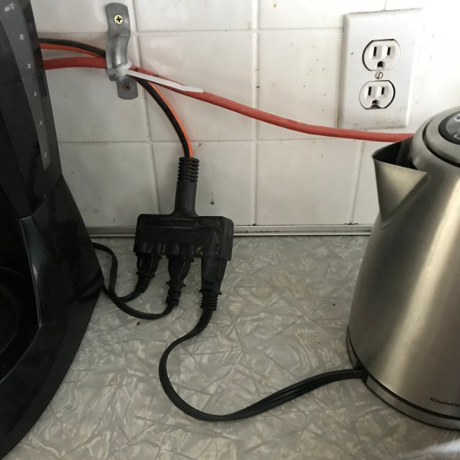Wiring for a bathroom isn’t the same as wiring for a kitchen. We have made due with extension cords.