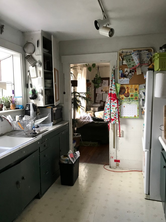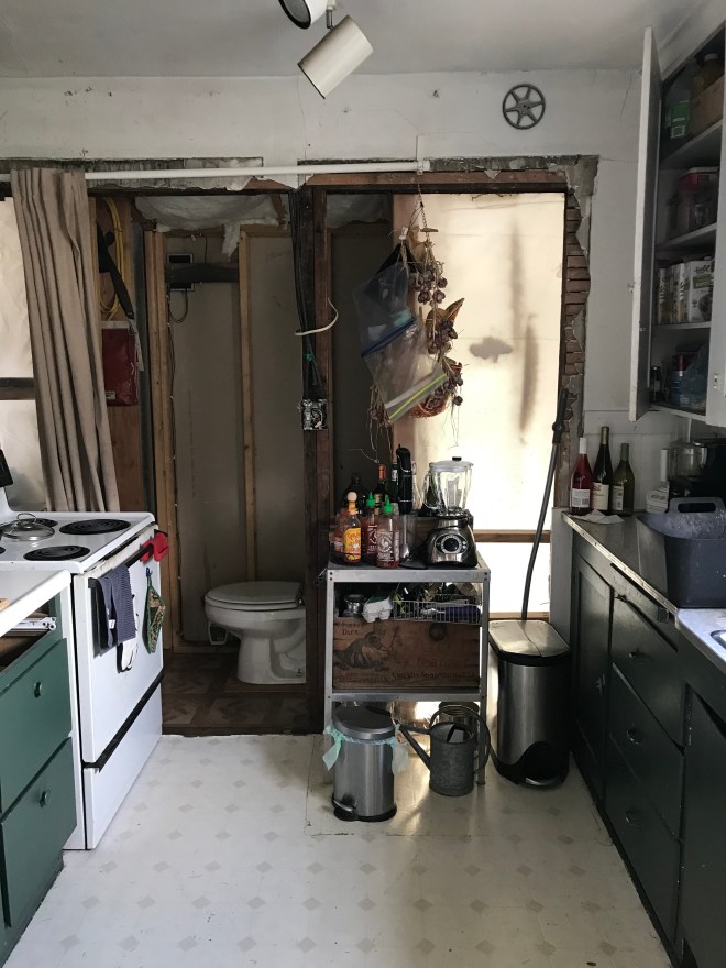 Thank you, kitchen, for your service. You have been a literal lifeline for us, and we honor you. Soon (like in the next 5 years sometime?) you will transform into a bathroom and that toilet will make more sense. ❤️