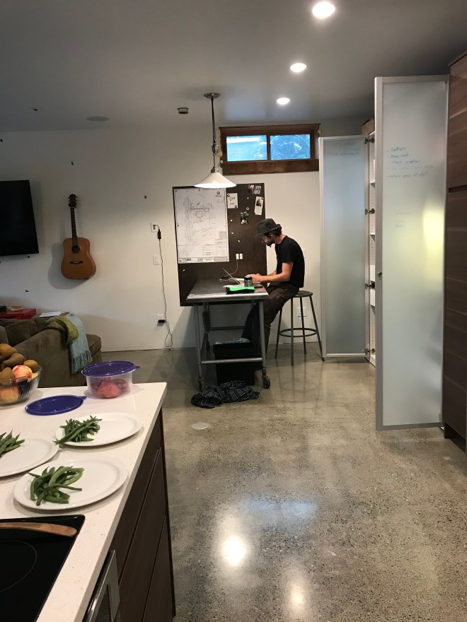 We have a lot more to do to finish the project and close out the permit, I will save that list for another post. There are just a couple of things down here that need doing to feel like we can settle in for awhile- we need curtains before the leaves drop so we don’t become a fishbowl for the neighborhood, and a bar counter on our peninsula would be pretty cool.
