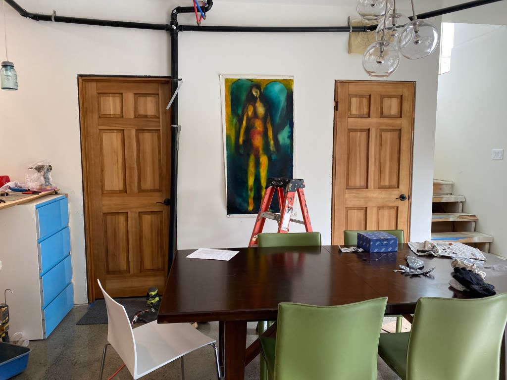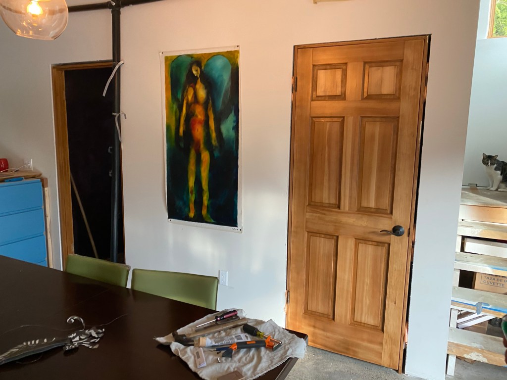 The future bathroom also got a door, which is a novelty for us, having lived for almost five years with a deconstructed bathroom and only a curtain for privacy. Truly, we are movin’ on up.