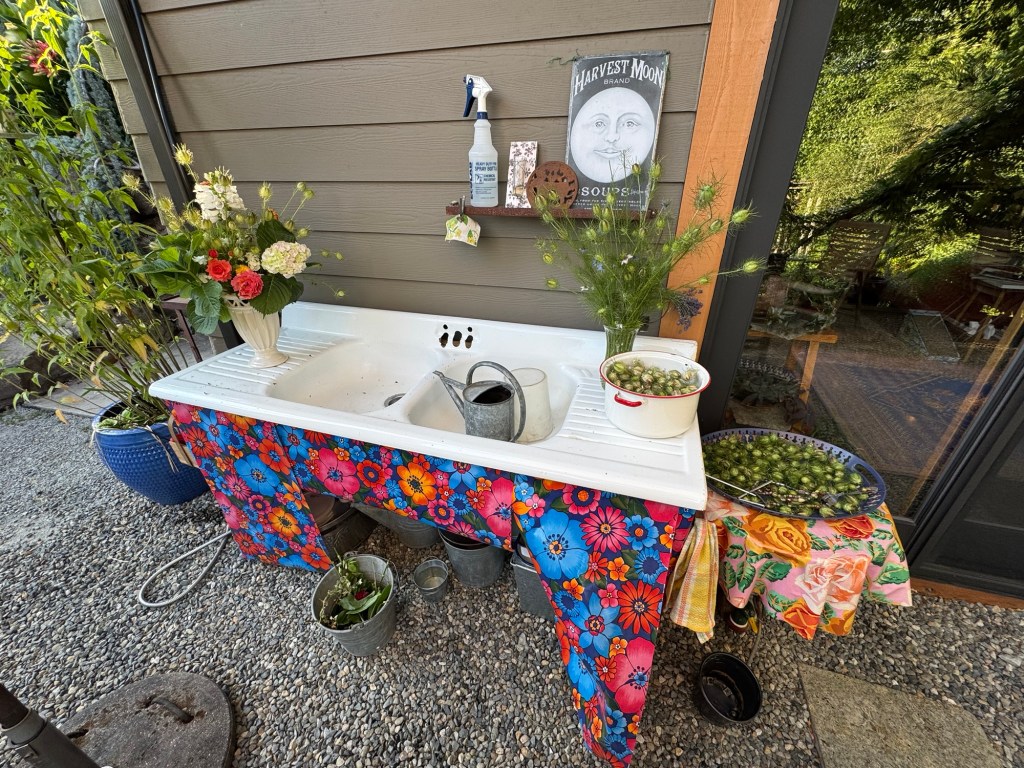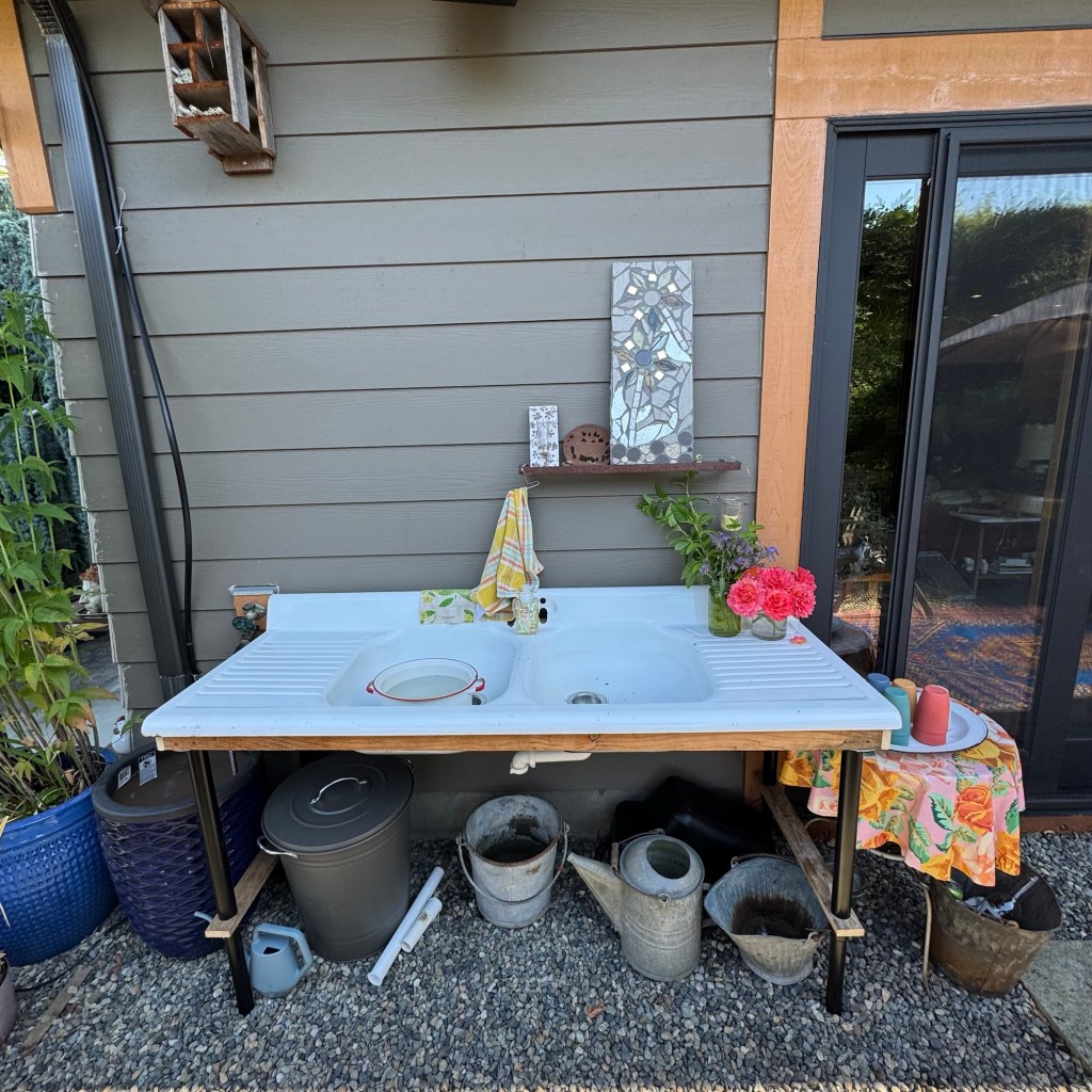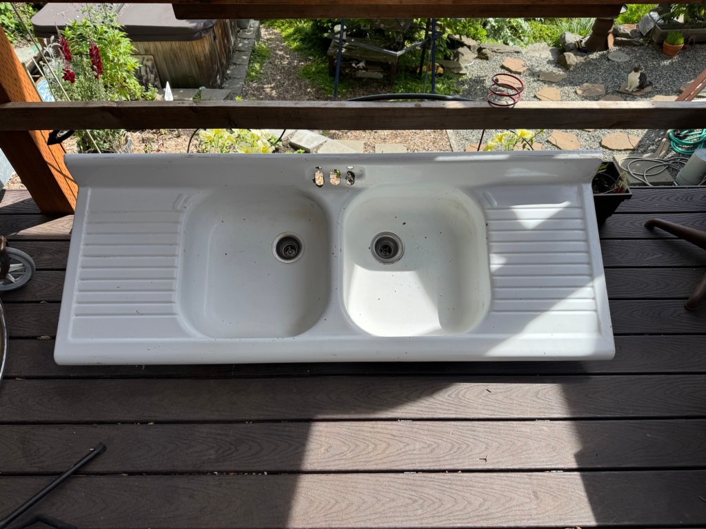Once upon a time we were visiting our friends Shelly and Greg at their new (to them) Skykomish cabin. It must have been around ten years ago because when I saw this cool old double-drainboard sink in the shed I immediately asked if they thought they were going to use it.