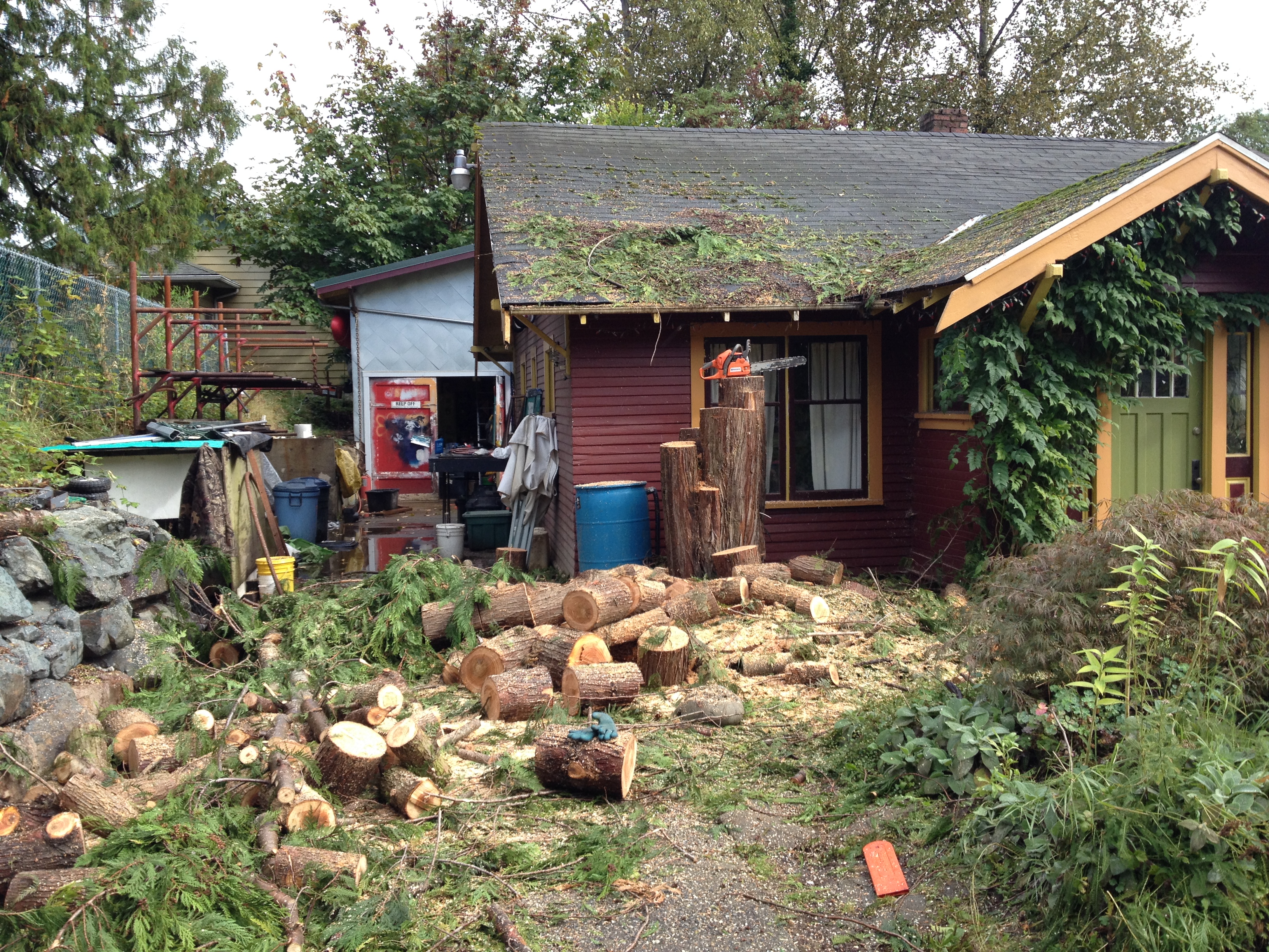 Except, real quick after I closed my eyes I was startled awake by, what’s that sound? It’s rain. Real rain. Real, hard rain. I ran outside in my underwear like I was going to be able to hold my hands up and just hold that downpour up in the sky. Instead I just witnessed the torrents pouring off from my 20′ high gutters pounding onto my uncovered, un-shored dirt embankments. I had visions of all my dirts slumping into a goopy mess under my house.