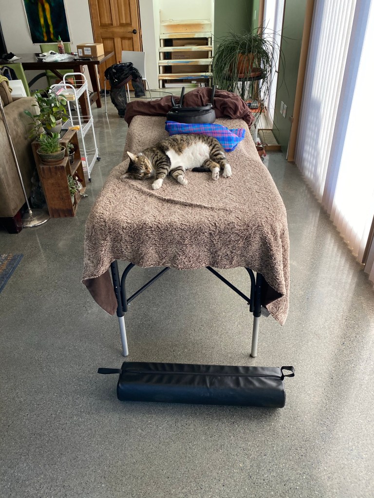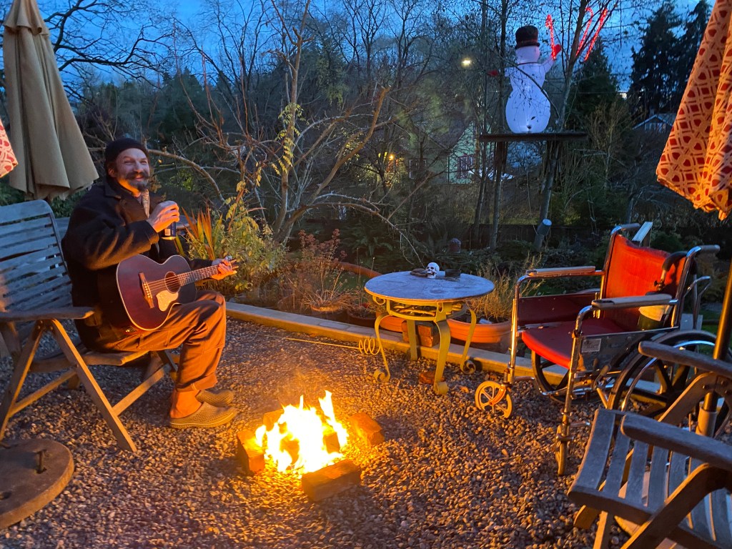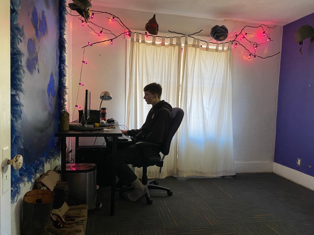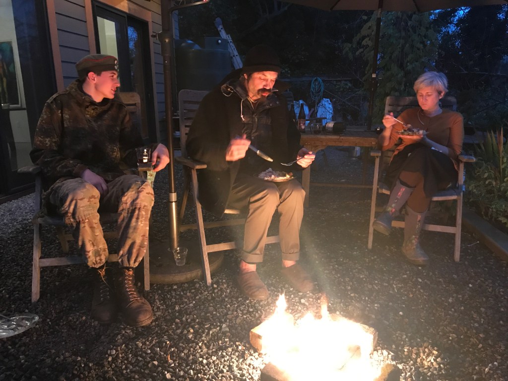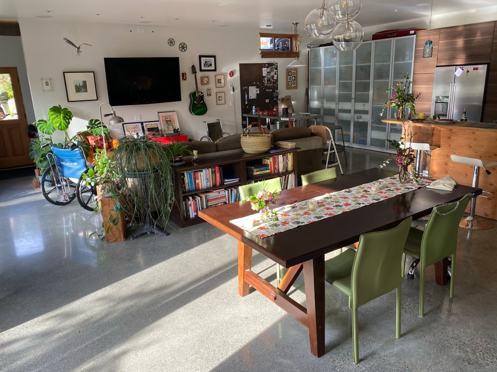 All of this displaced Huck’s virtual school and workout station to the dining room where he set up his new desktop computer which took over most of the table. While we enjoyed seeing him a lot more and interacting with him around whatever game he was into, it also meant that we had to compete for audio space if we wanted to watch TV, listen to music, or talk. This meant that rather than taking the time to paint our old bedroom or unearth and refinish the fir floors in there we left the 20-year-old paint job and replaced the ratty old wall-to-wall with some carpet tiles and called it good for now.